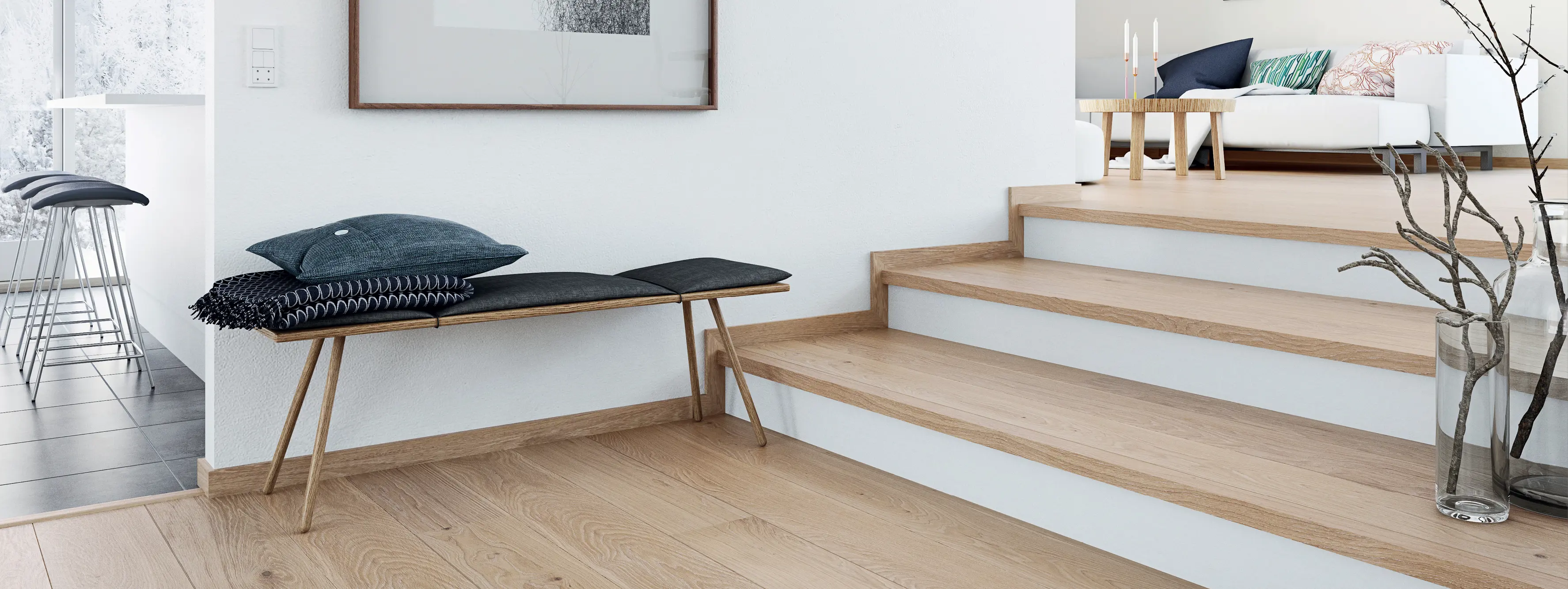 The stair nosings therefore match perfectly BOEN’s hardwood floors range, making stairs a connecting element between the rooms in terms of their visual design. However, this is not the only way in which we offer continuous design. Skirtings, with the same colour and surface texture as the floor, provide for unified design possibilities.