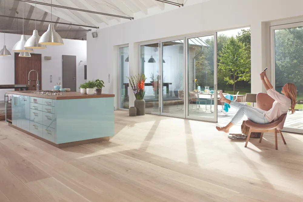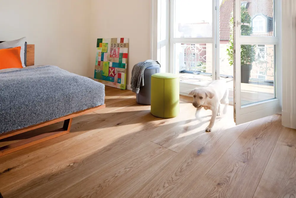 Large room often invite people into choosing particularly wide planks. Our Chaletino planks create a lovely and elegant atmosphere with at width of 300 mm and a length of 2750 mm. The oak surfaces of Chaletino planks are available in a range of finishes to suit the most varied of furnishing styles.