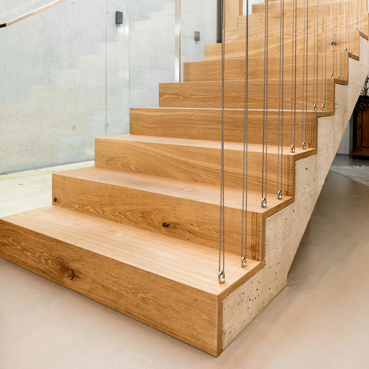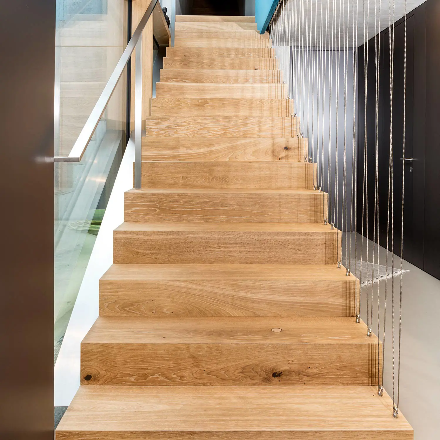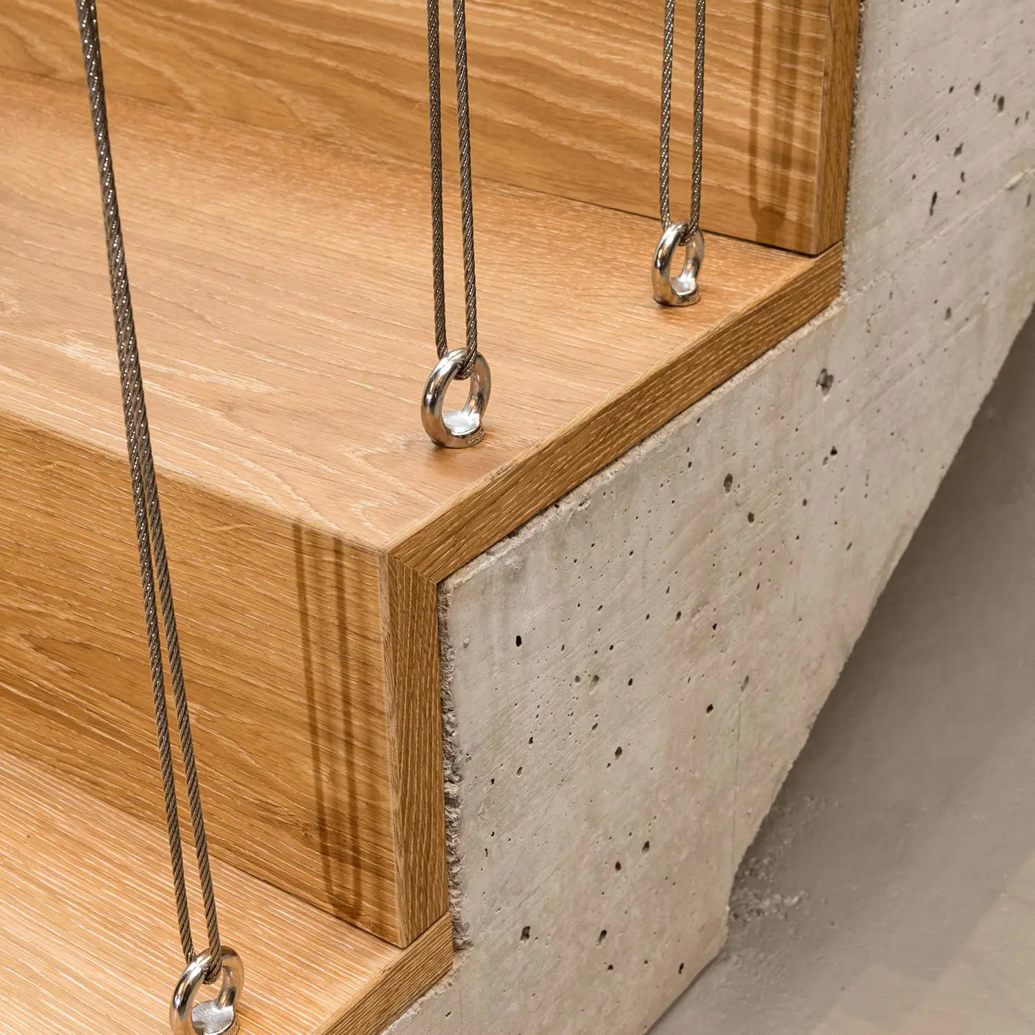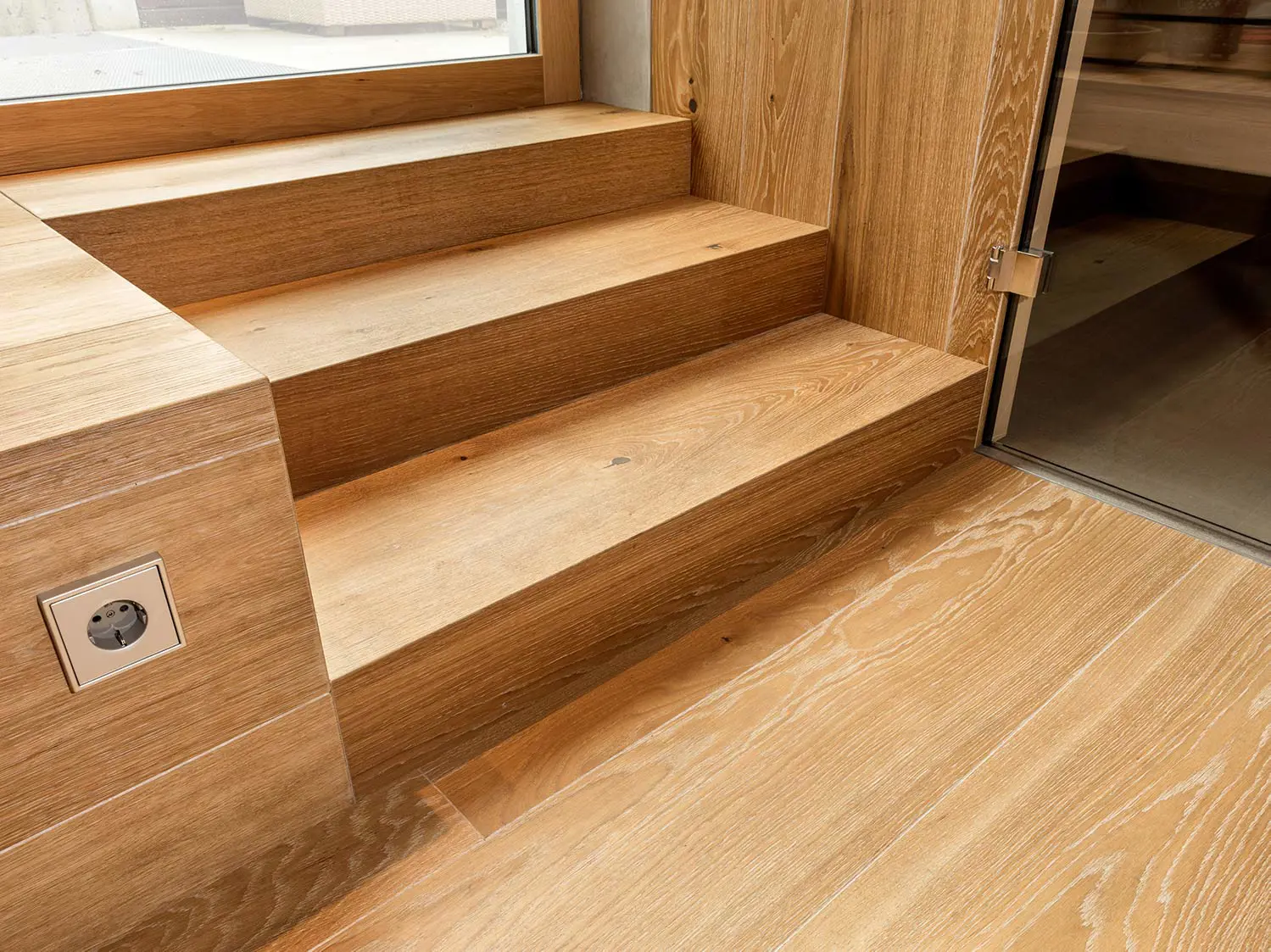 Woodpark installed the wood flooring, realized the stairs and the vertical wall coverings.