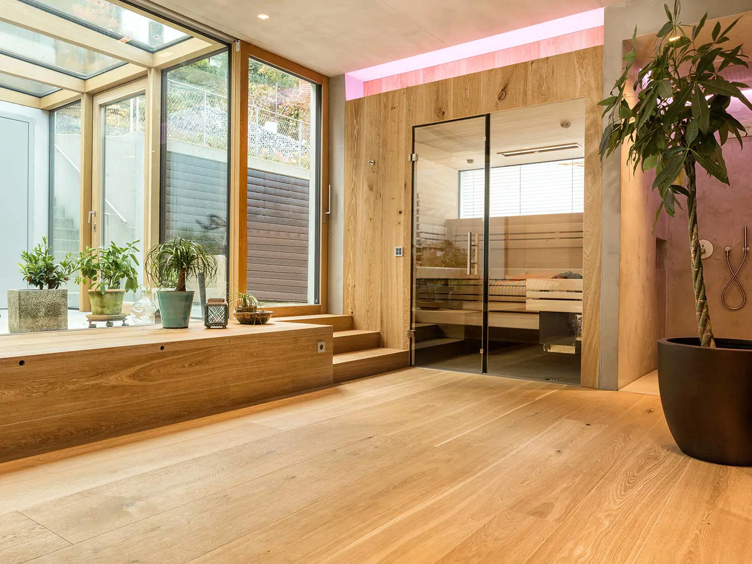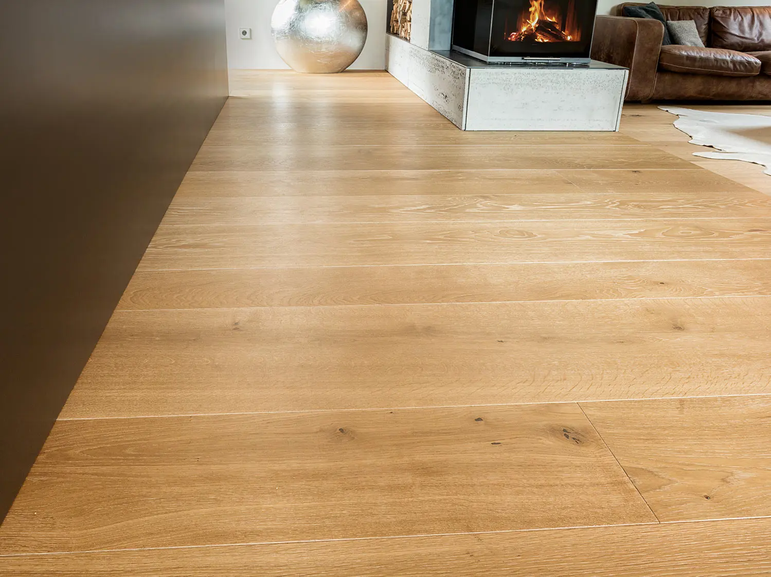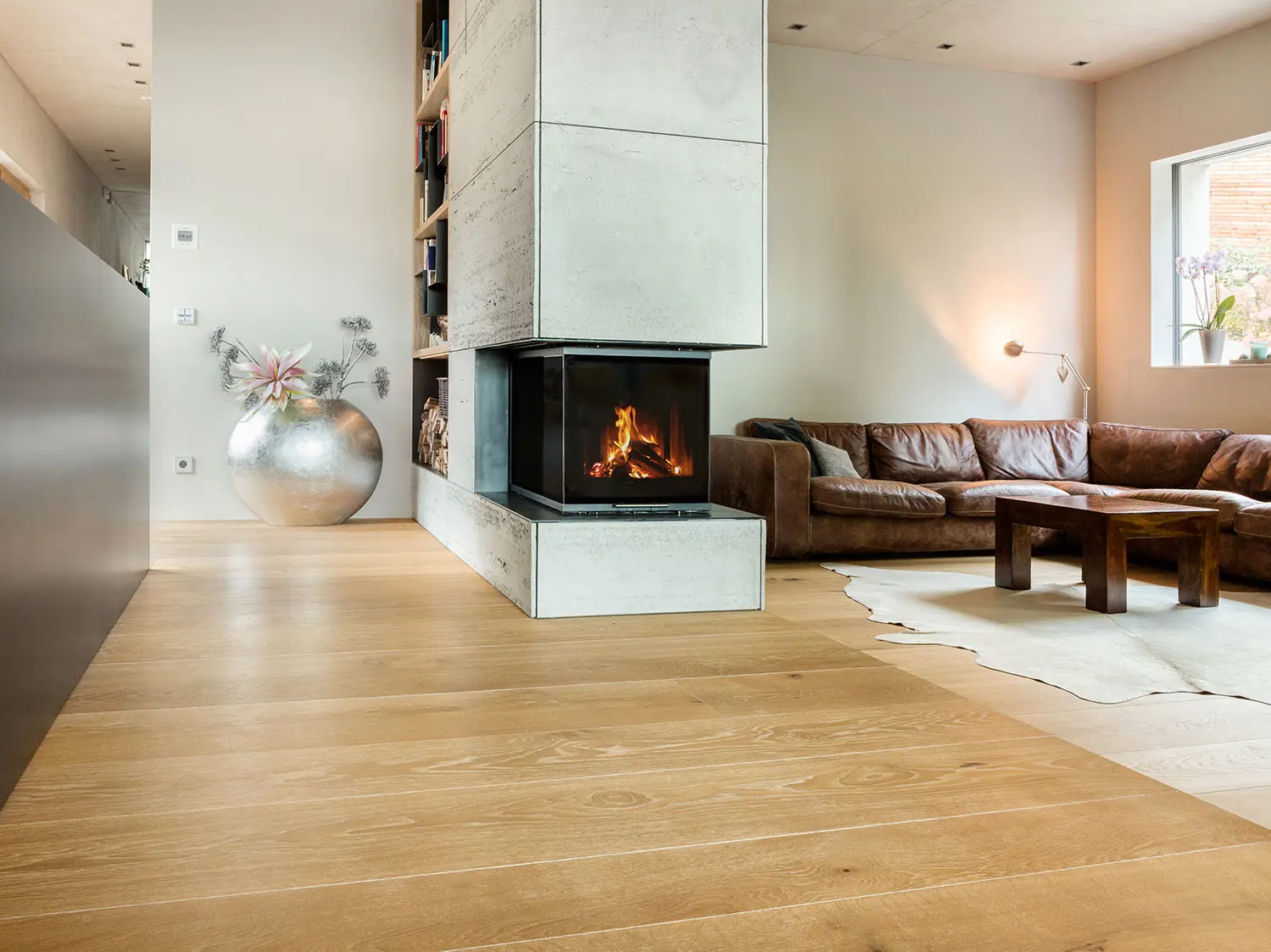 Chalet is one of BOENs widest and most exclusive oak flooring with widths up to 395 mm. Every Chalet flooring is unique because Chalet floors are designed and adapted to each room by BOENs own floor designers. The customized order is first put into production once the designers' proposals are approved by the client. The floor used is Oak Old Grey. The product is not available in our range anymore. If you like it, you can find a good alternative in Oak Traditional.