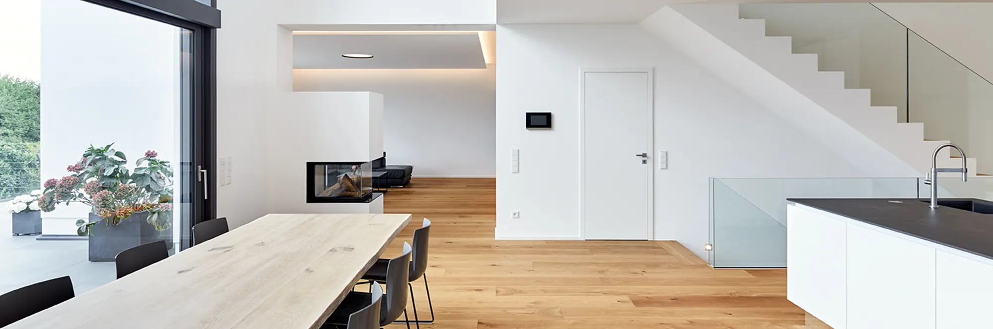 ‘The demands on the wooden floor were very high from the beginning. The specifications of the architect were explicit: The use of wood should be a cosy contrast to the architecture of the building and at the same time visually connect the living spaces’, reveals Bodo Gschwendtner, owner of the company Parkett Gschwendtner and the person responsible for the floor. ‘At the same time, the wood floor had to remain attractive for decades regardless of changing interior design styles. Like the whole architecture, the floor should adapt to later stages in the life of the owner and stay beautiful for a long time.’