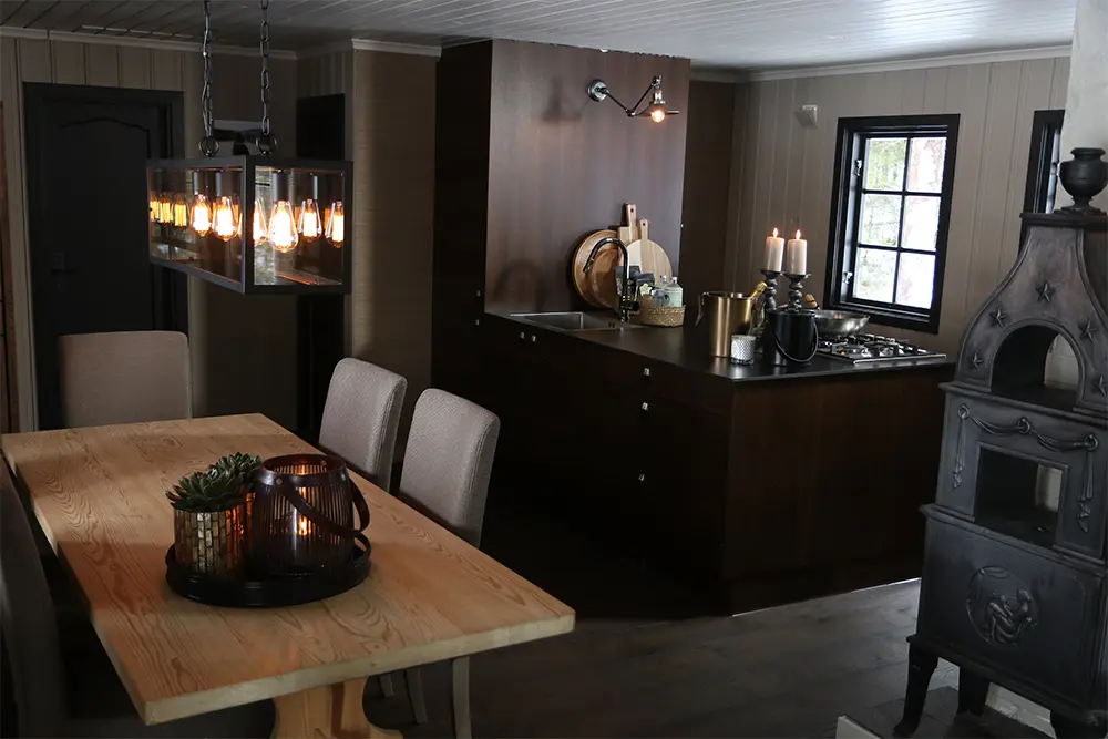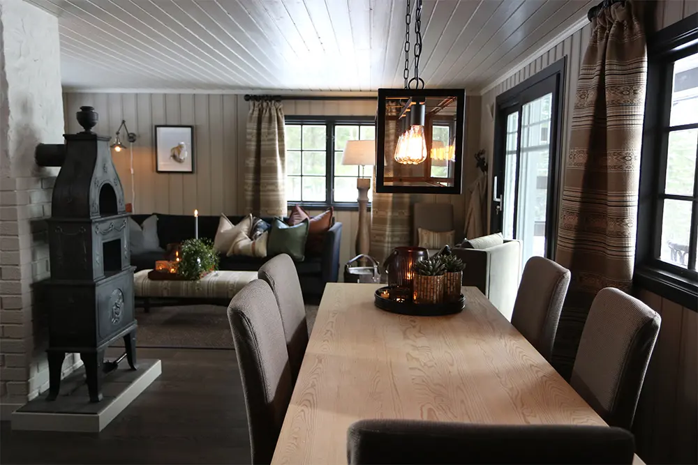 A modern twist for a cabin-style is the key words in describing this cabin. The floor Oak Brown Jasper creates a cosy look combined with the light walls and the dark interior.