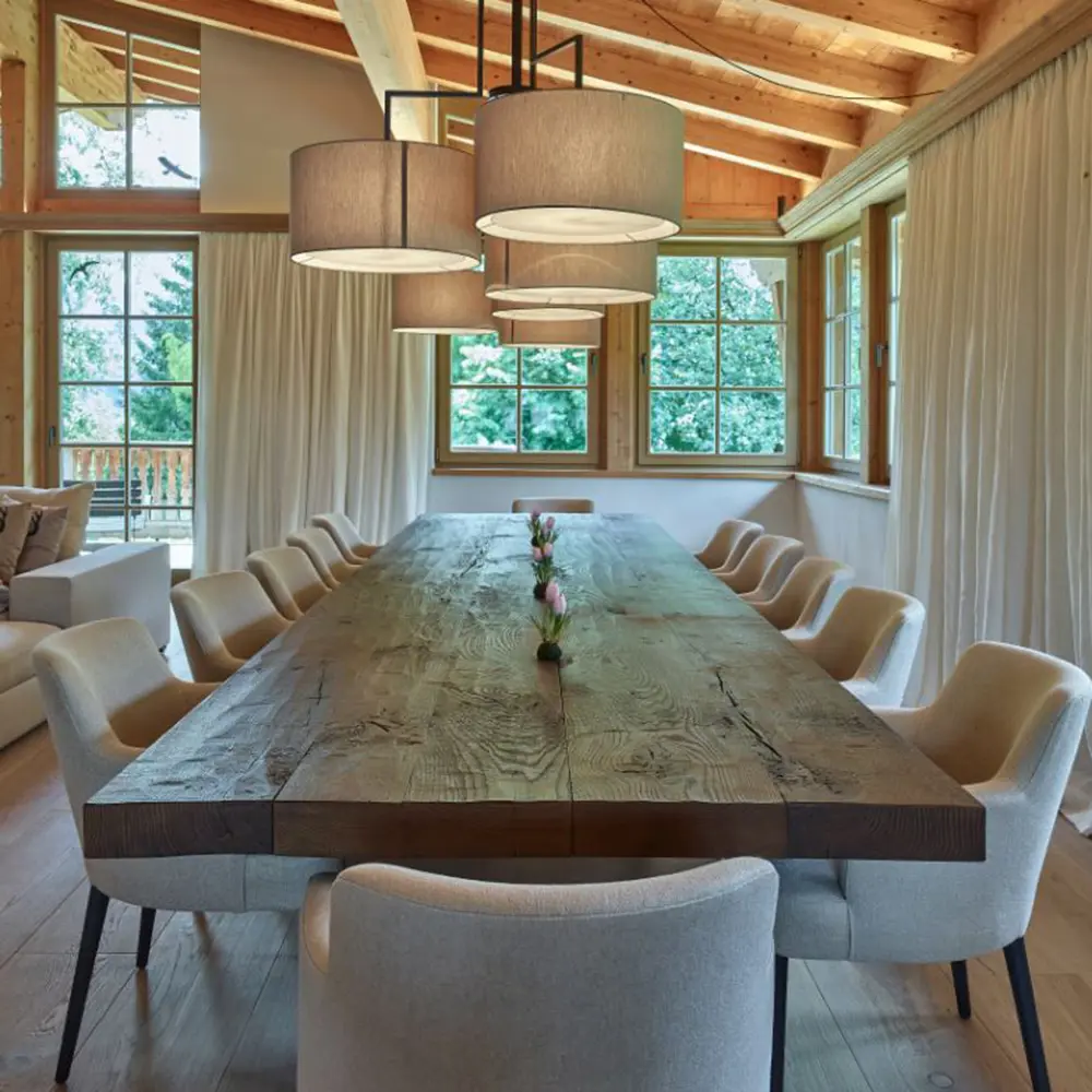 For this project was used our BOEN Chaletino which stands for craftmanship and innovation hand-in-hand. Large rooms often invite people into choosing particularly wide planks. Our Chaletino planks create a lovely and elegant atmosphere with a width of 30 cm and length of 2.75 m.