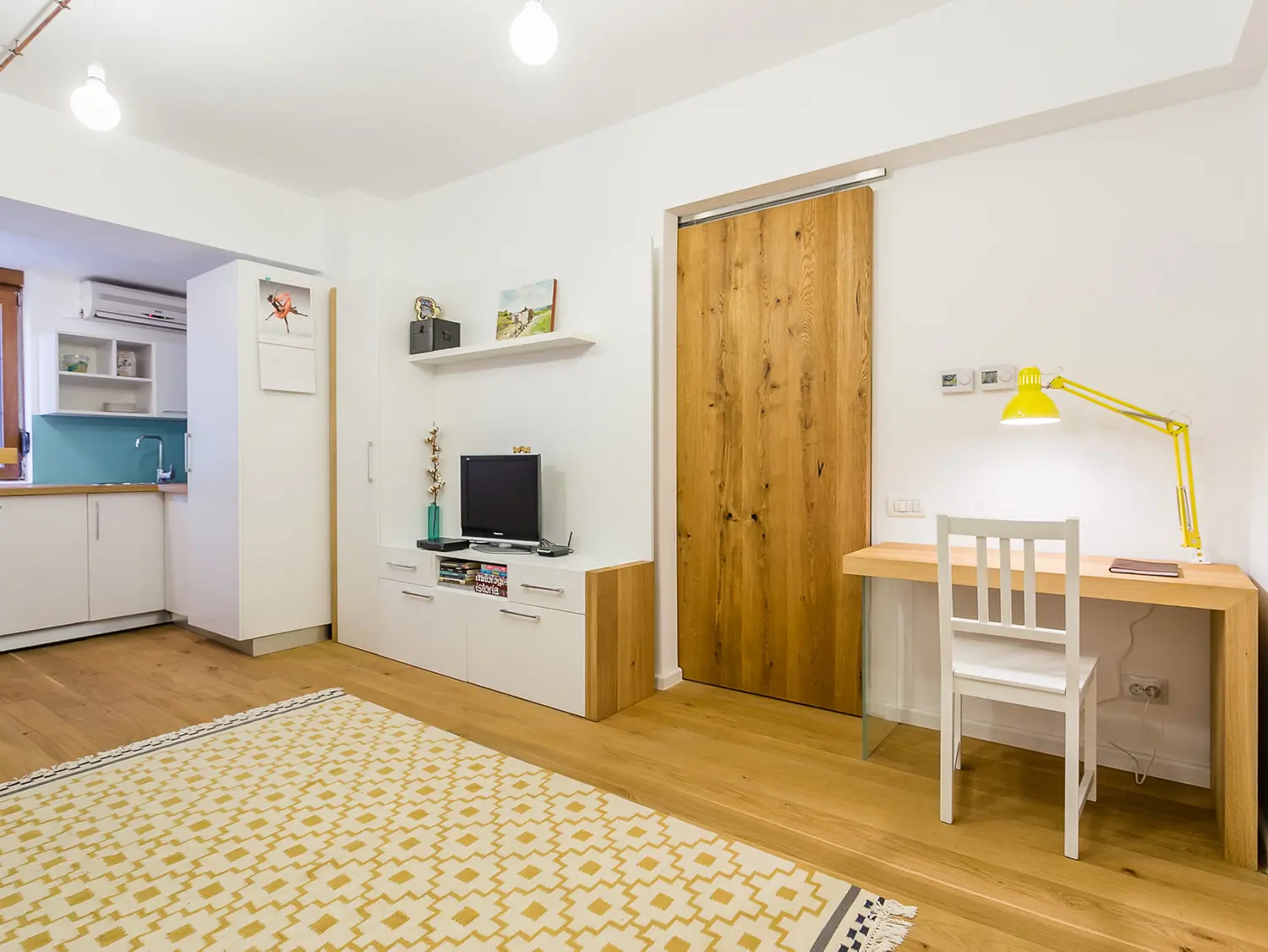Is a small studio, in the center of Bucharest, a client wanted a simple, clean, minimalist space.