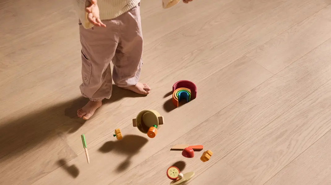 - Lower effort for cleaning and care. Less work, more living. The floor’s dirt-repellent surface is family-friendly, giving you more time for the enjoyable things in everyday life.