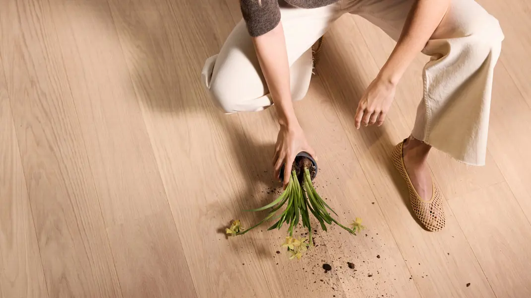 - High resistance to water and chemicals. Whether it’s spilled water or other mishaps: your floor can handle it. The protective formula combining Live Pure™ and the initial treatment will confidently keep liquids at bay.