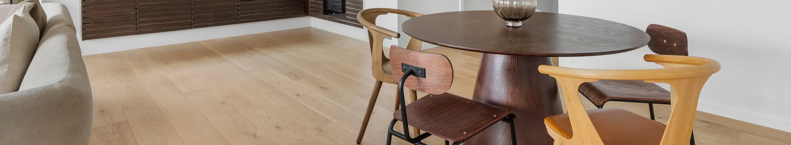 Pour compléter cette vision, nos lames Castle ont été choisies – il est possible de les associer aux lames Chaletino – afin d’ajouter de la chaleur et du caractère aux espaces ouverts et lumineux. Avec son grain vivant et ses tons doux, le revêtement de sol renforce le lien avec la nature, reflétant la lumière évoluant tout au long de la journée. Au-delà de leur attrait esthétique, nos lames portent l'écolabel Nordic Swan, spécialement demandé pour ce projet, une prestigieuse certification scandinave pour une production durable. Ce label garantit un impact réduit sur le climat, un engagement en faveur des principes de l’économie circulaire et l’absence de substances nocives.