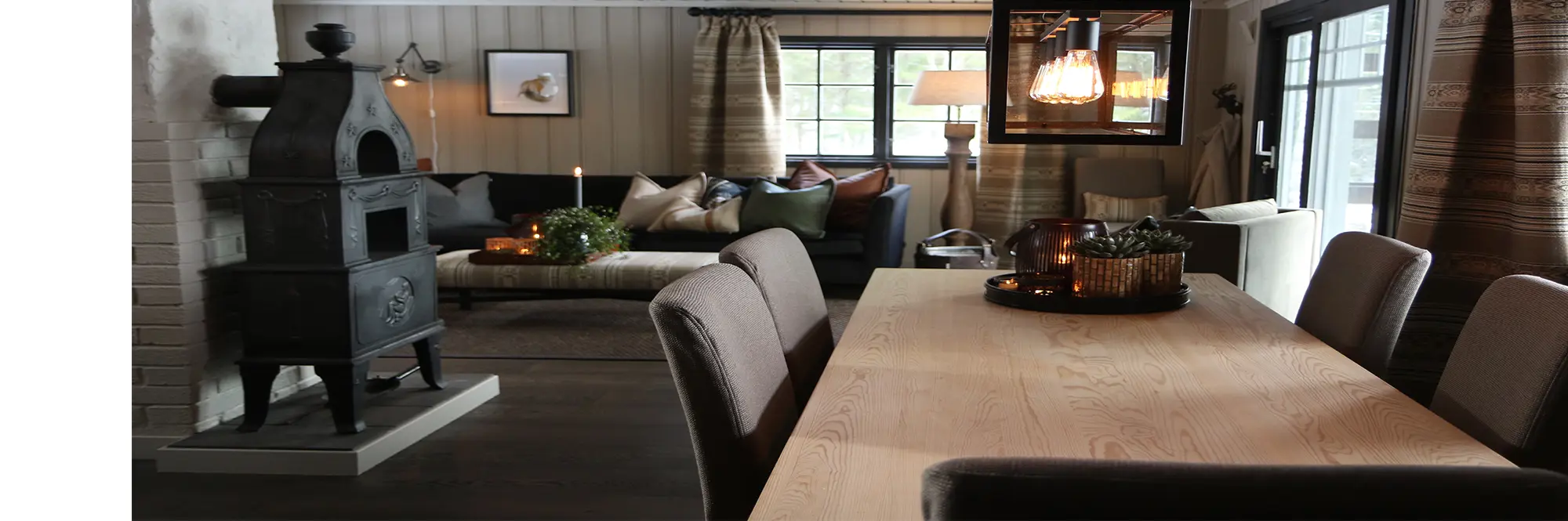Uno stile tipicamente montano ravvivato da un tocco di modernità: così si potrebbe descrivere la quintessenza di questo chalet. Il pavimento realizzato in Rovere Brown Jasper crea un ambiente accogliente, in abbinamento alle pareti chiare e agli interni scuri.