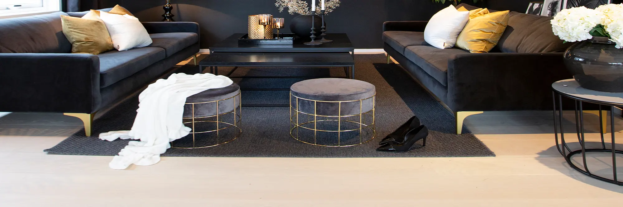 I dette huset bor Mona og familien i Kristiansand. Interiøret spiller veldig fint med det lyse gulvet, og de mørke kontrastene gir en vakker balanse.