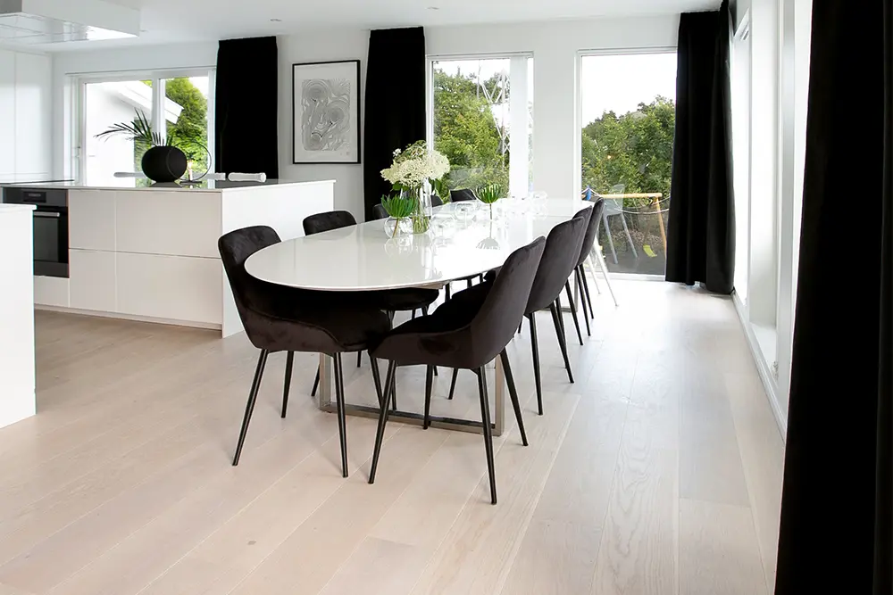 Eik Pearl is een wit gepigmenteerde vloer die zorgt voor licht en een rustig gevoel in de ruimte. Verbeter het gevoel van de ruimte met de Castle Plank met een breedte van 209 mm.