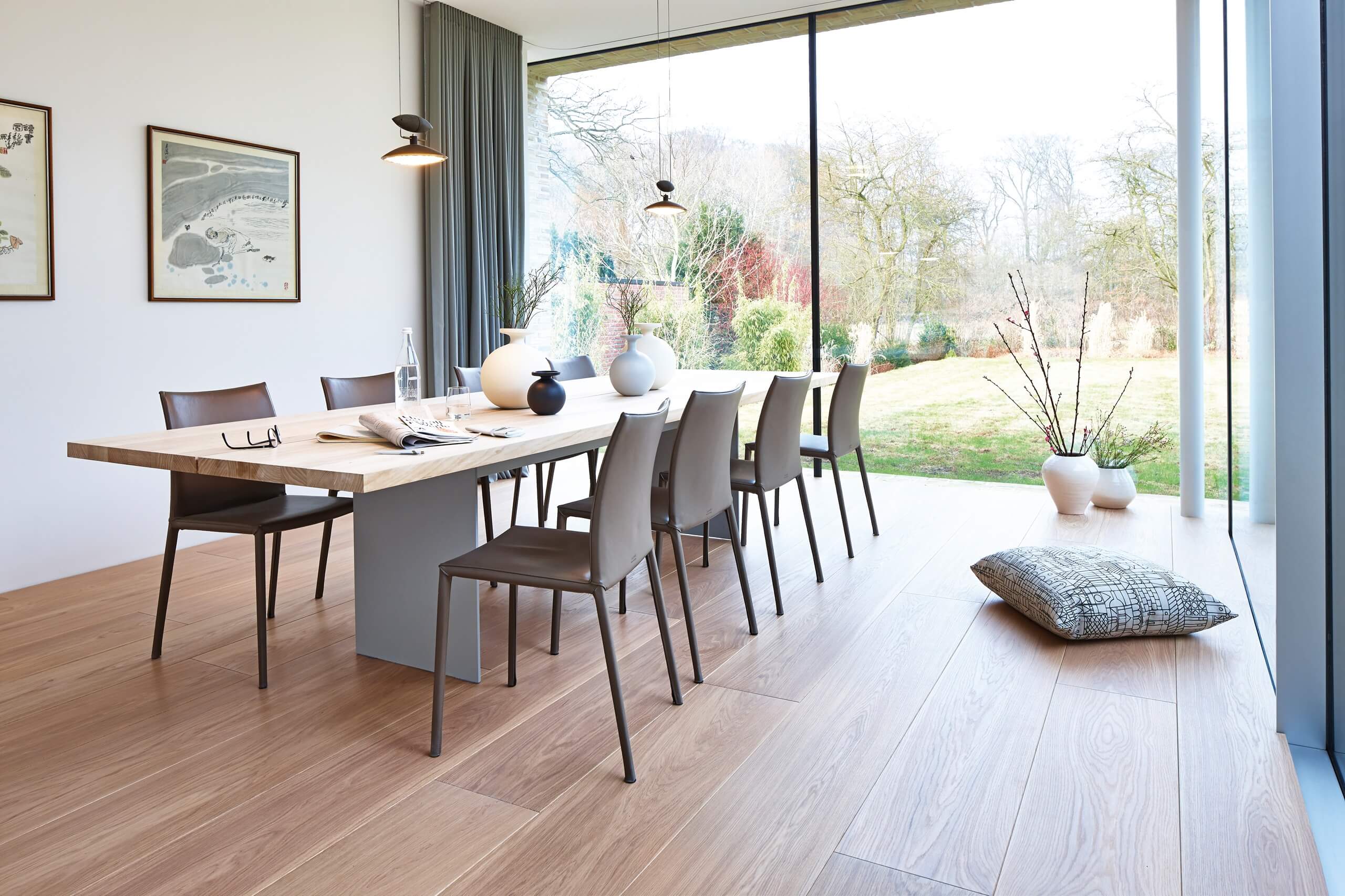 Chaletino-plankor framhäver ekens naturliga struktur på ett imponerande sätt. De extra breda plankorna, de eleganta ytorna och de 18 färgvarianterna skapar ett livfullt och stilrent uttryck i varje rum.