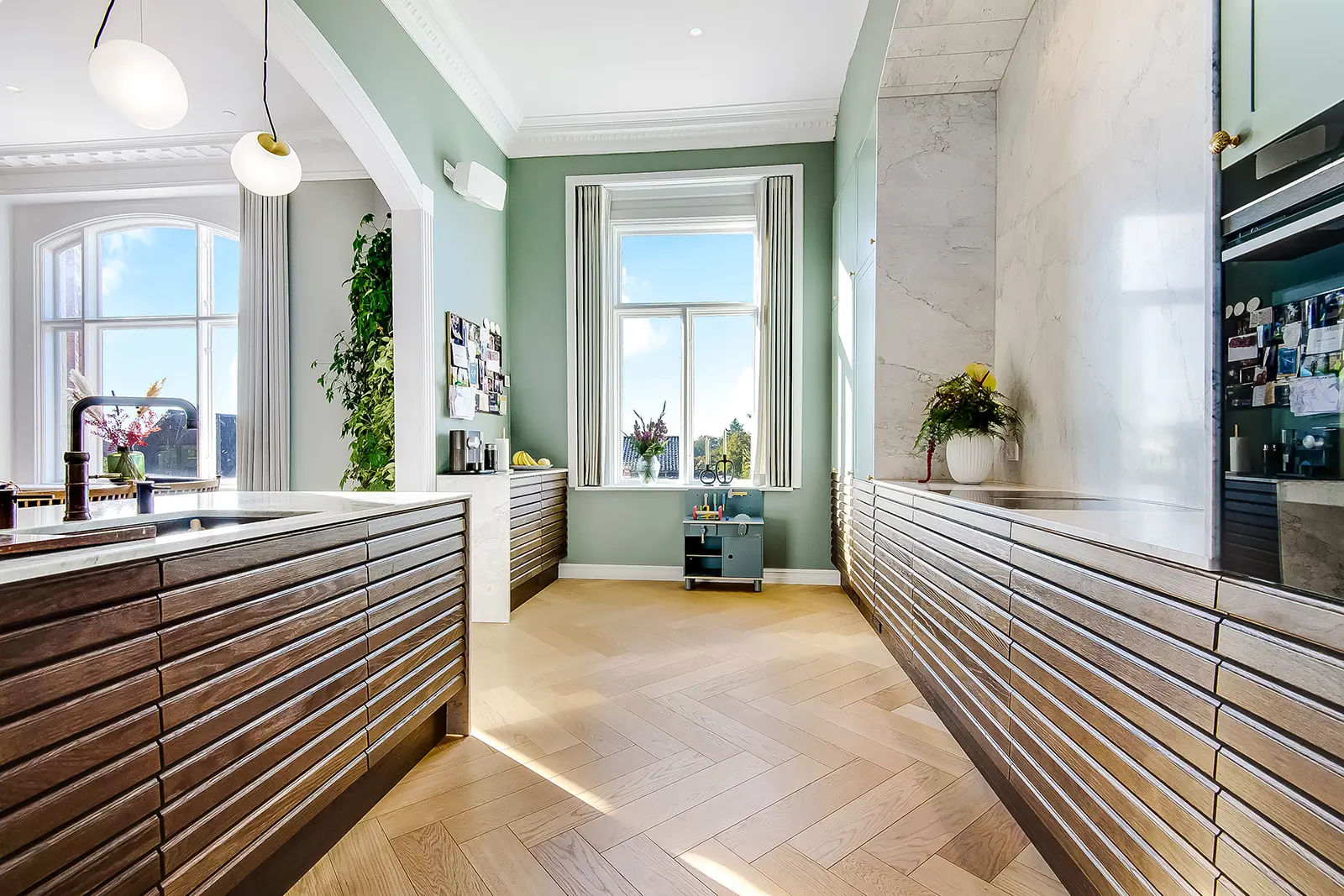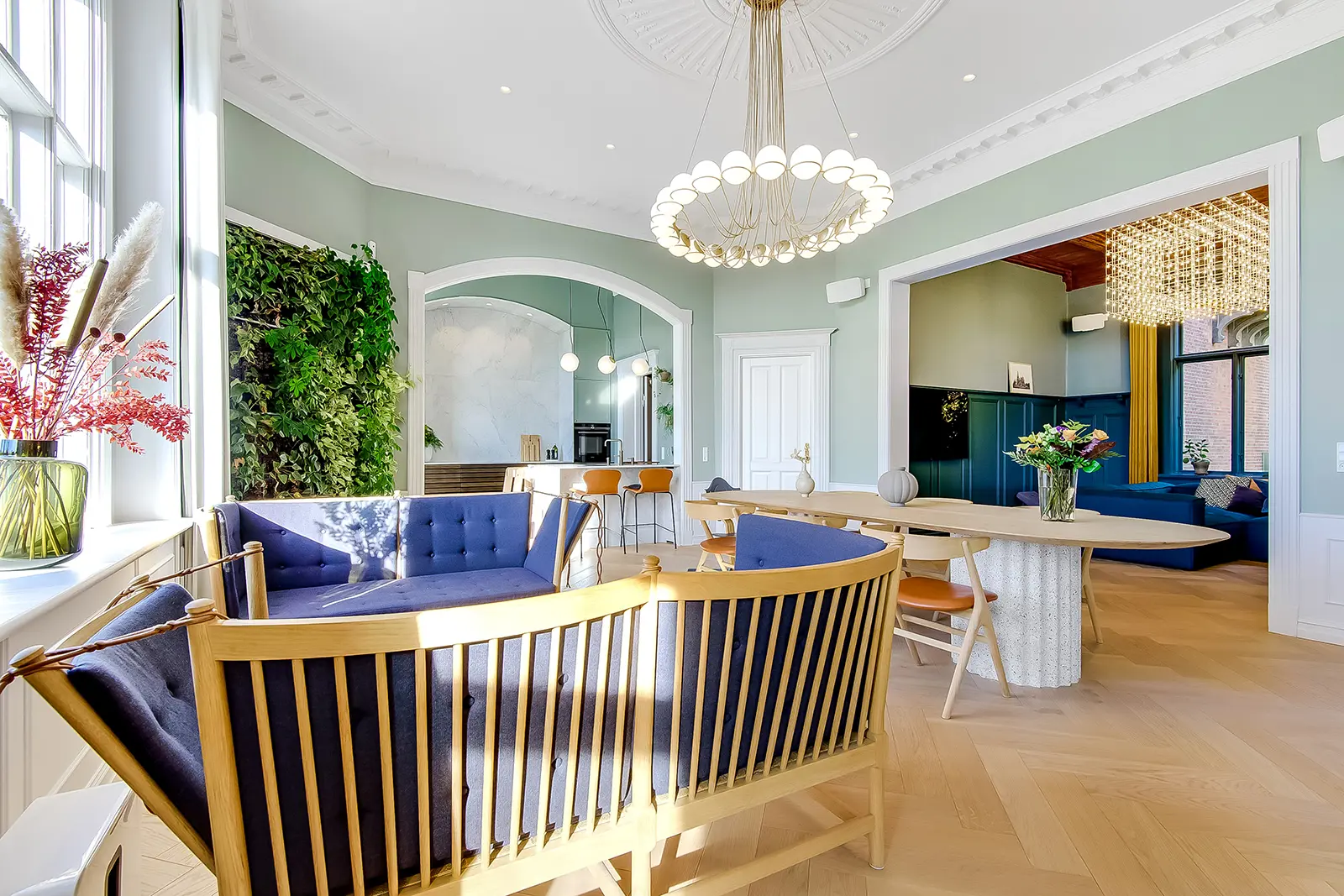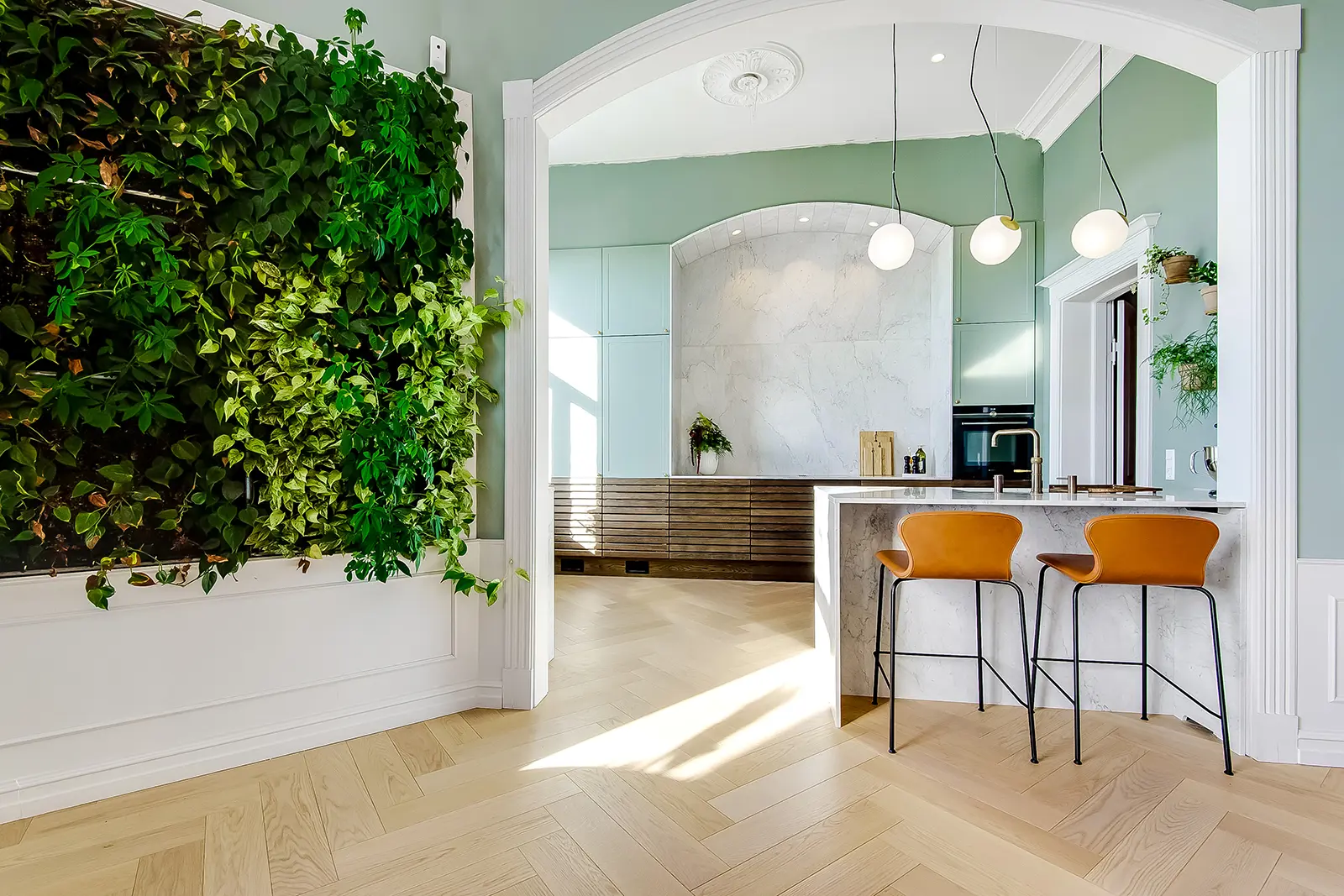 Trots de stora rummen är villan varm och inbjudande. Med ett fantastiskt urval av material och kreativa lösningar som t.ex. en vägg av växter, detta är verkligen ett drömhem.