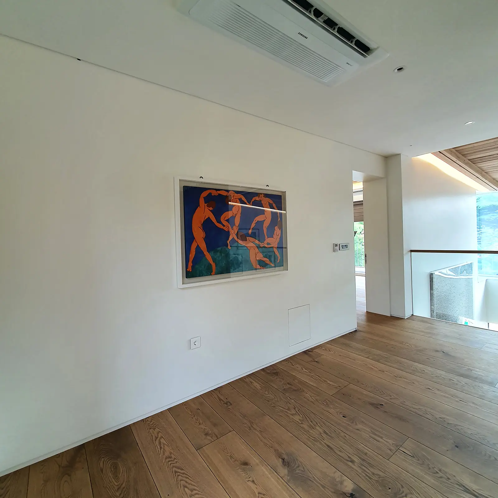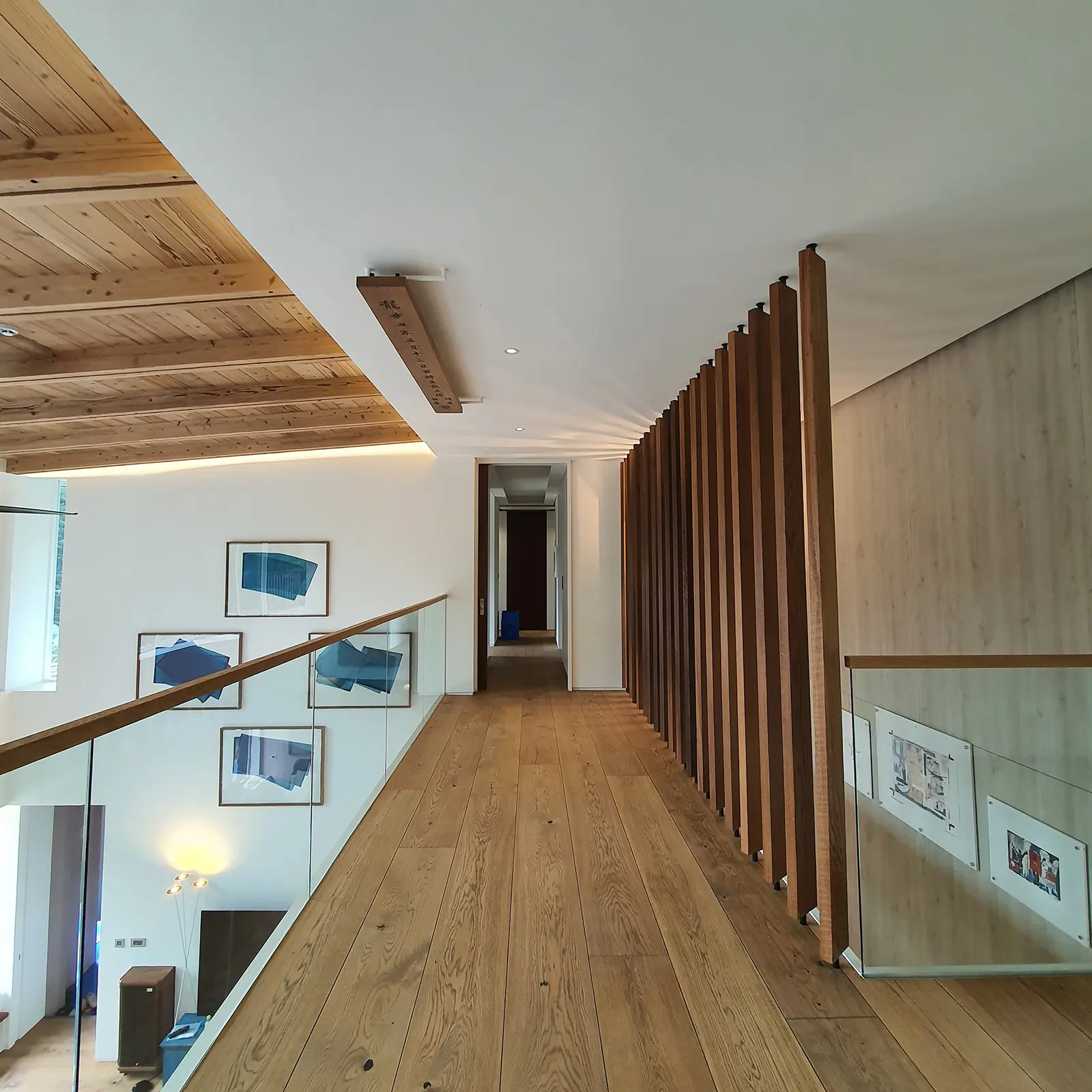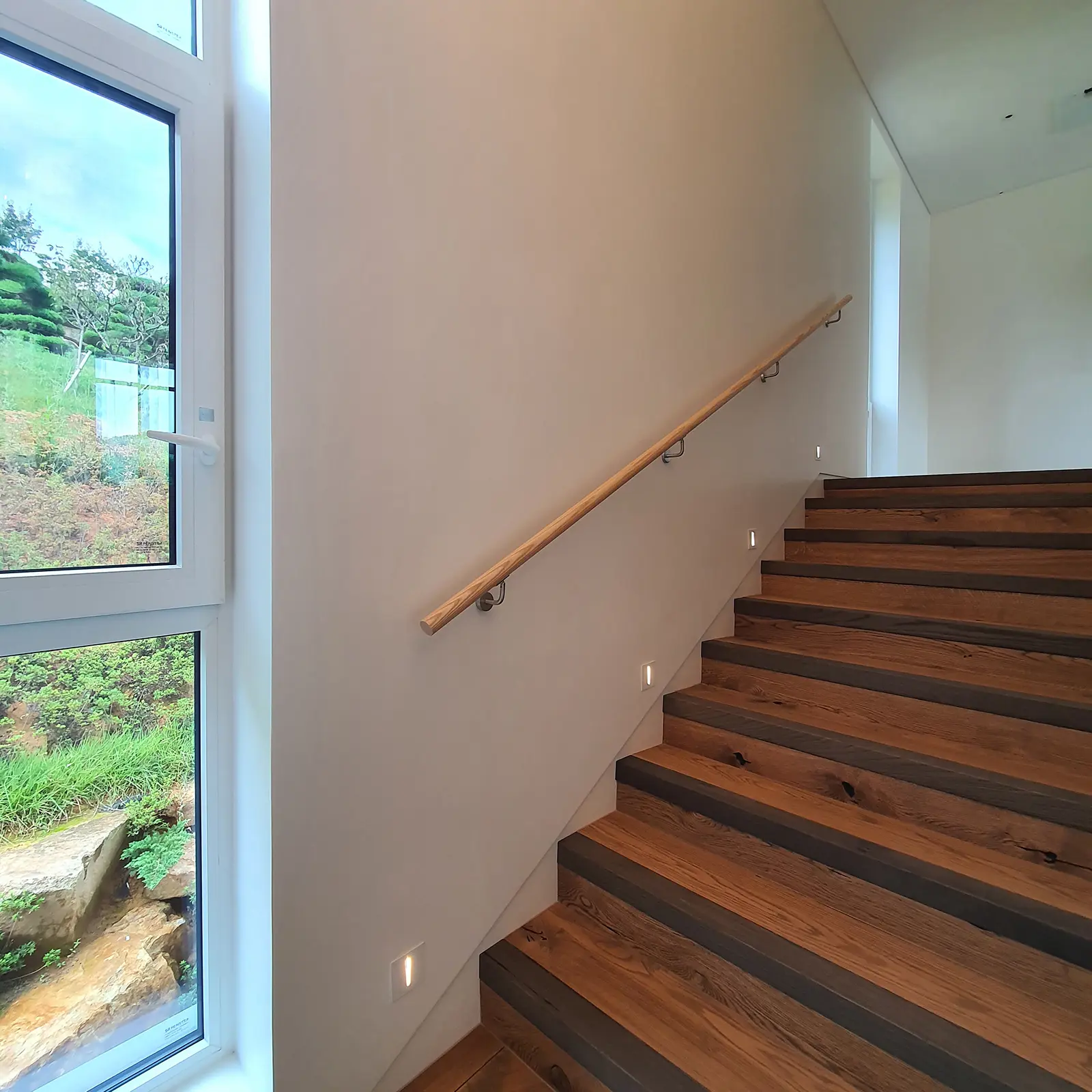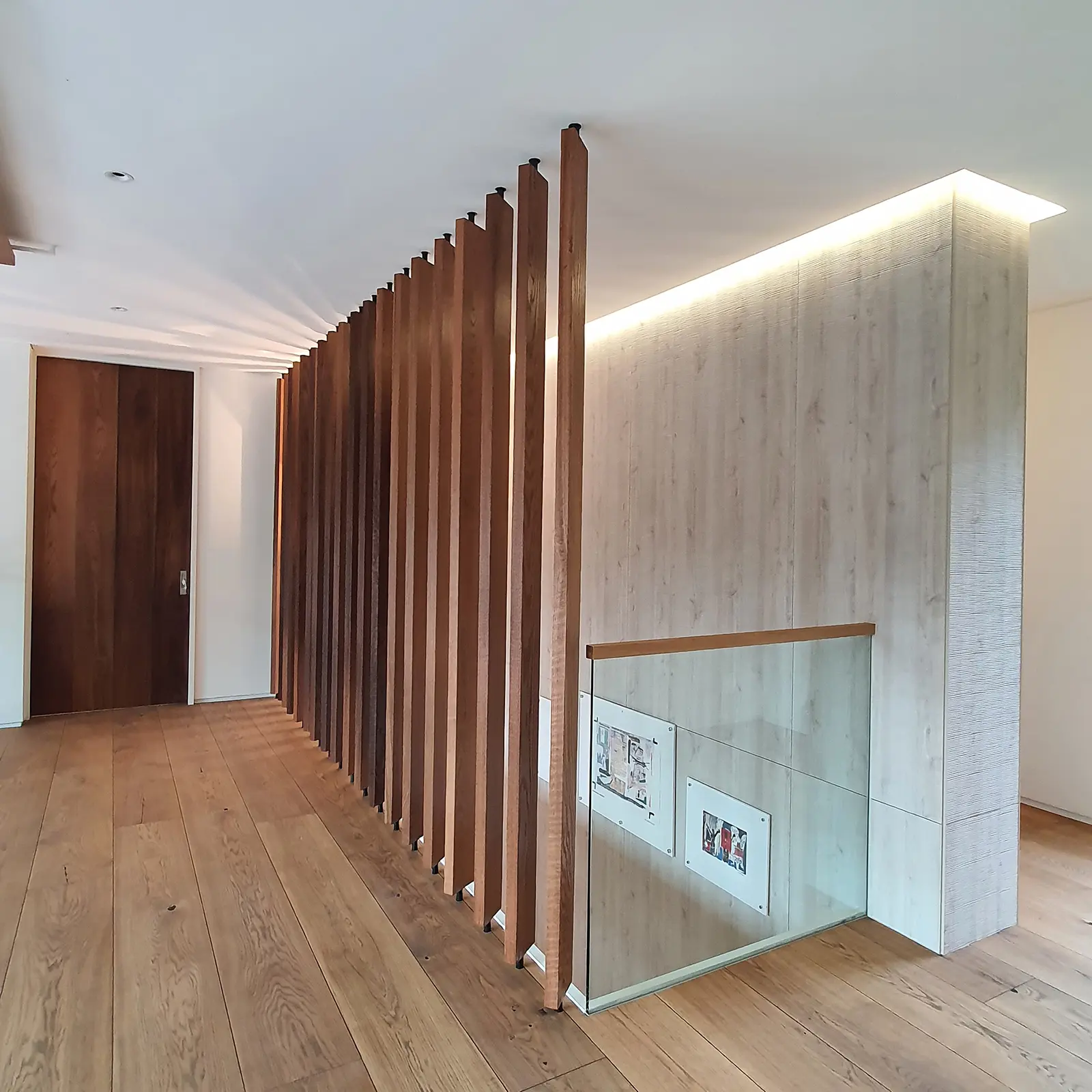 H Design Group designade och installerade golv och trappor med våra Chaletino-produkter. För att göra det lättare att skilja trapporna åt installerades trappnosarna med olika träslag.